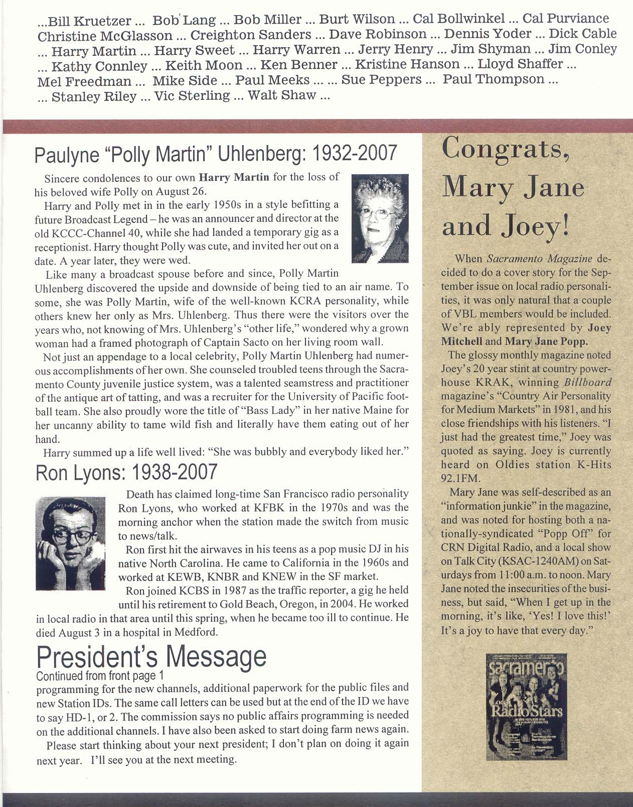 HOME    A/V    Bios & History    Contact Us    Links    Meetings/Events    Membership Info JOIN!    Newsletters    Signed-Off